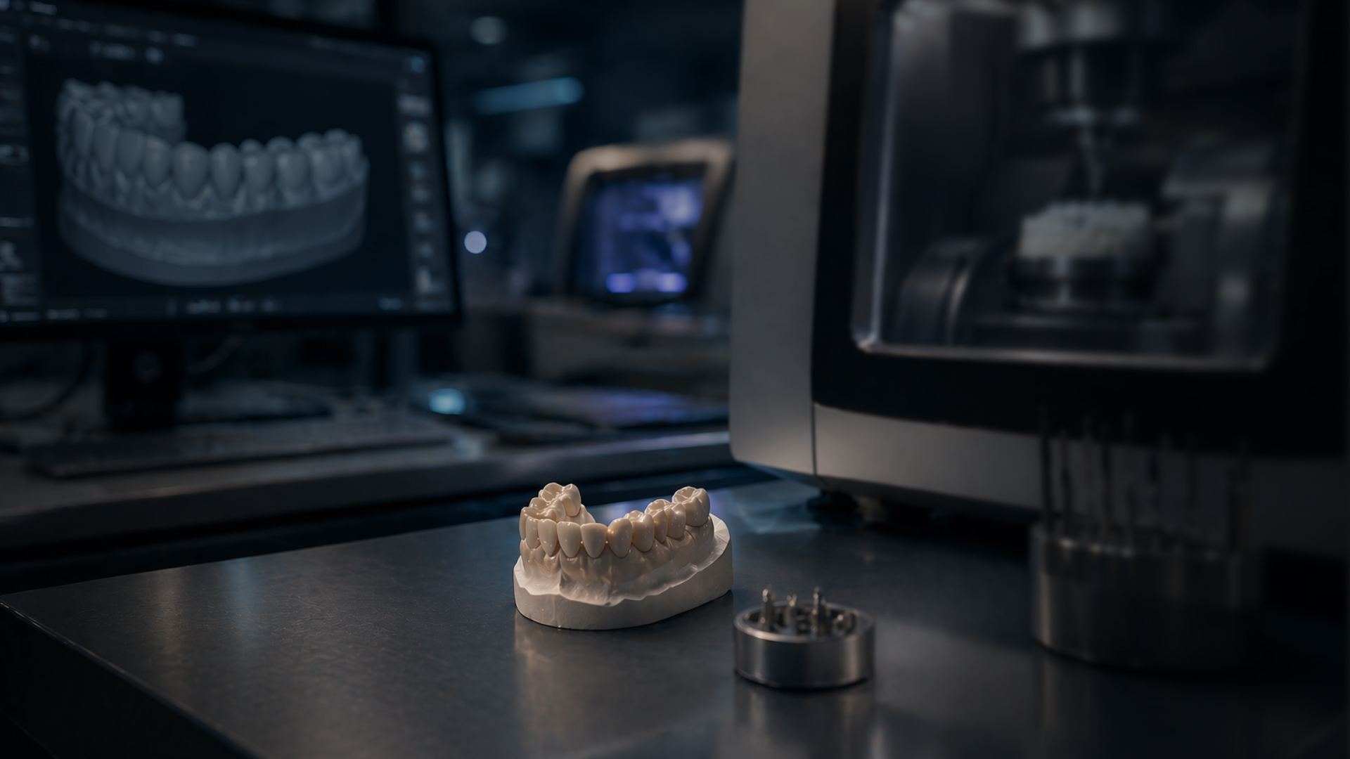 The workflow differences are concrete. Bottom-quartile labs spend 2–4 hours per day manually logging into portals to download scans. Top-5% labs auto-download from every portal automatically. Bottom-quartile labs transcribe prescriptions by hand. Top-5% labs use AI to read and enter cases, with humans reviewing exceptions only. Bottom-quartile designers spend 25–45 minutes per crown. Top-5% labs produce AI-assisted designs in under 10 minutes total.